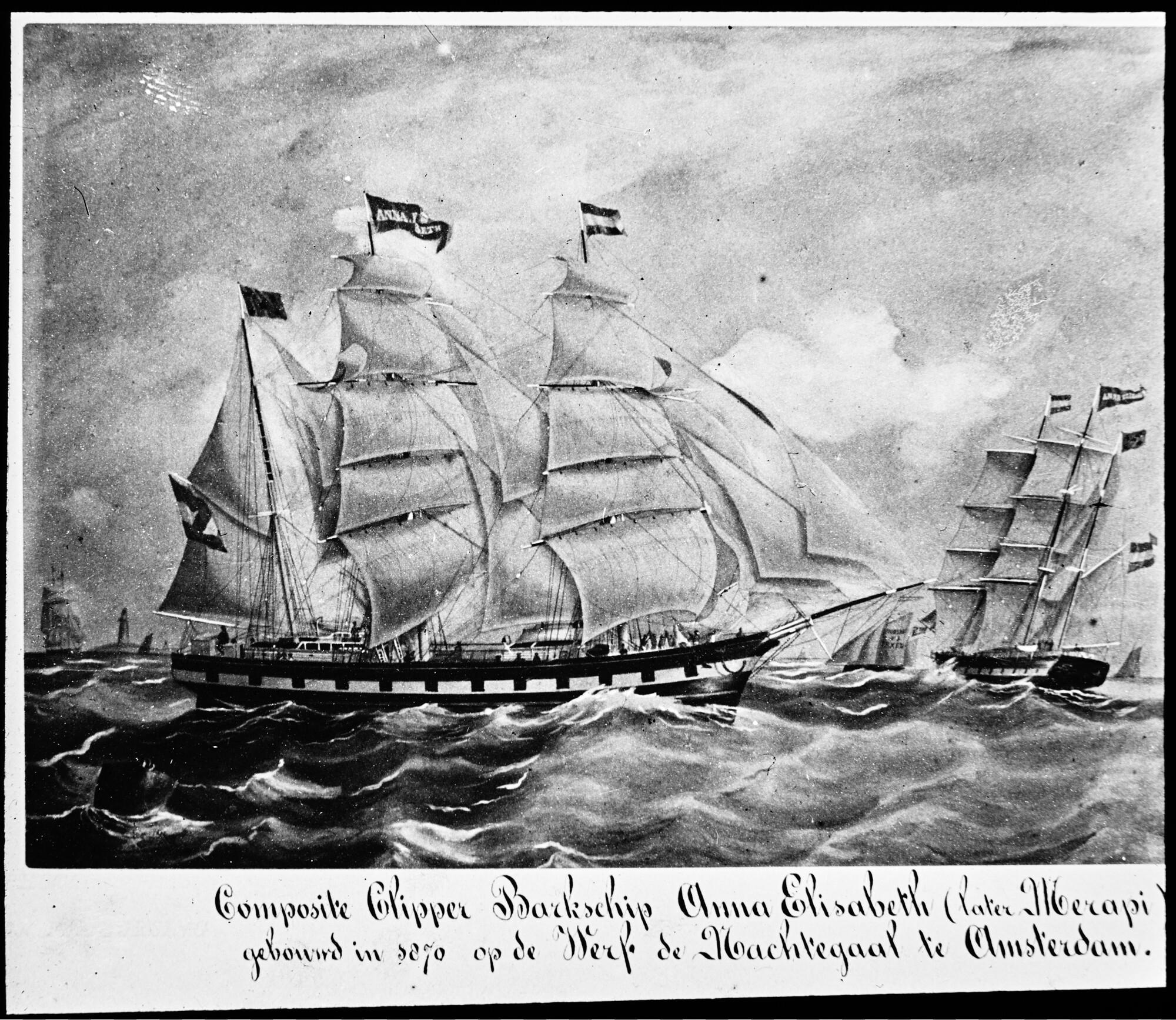 De driemast houten bark 'Thorbecke', gebouwd in 1875...