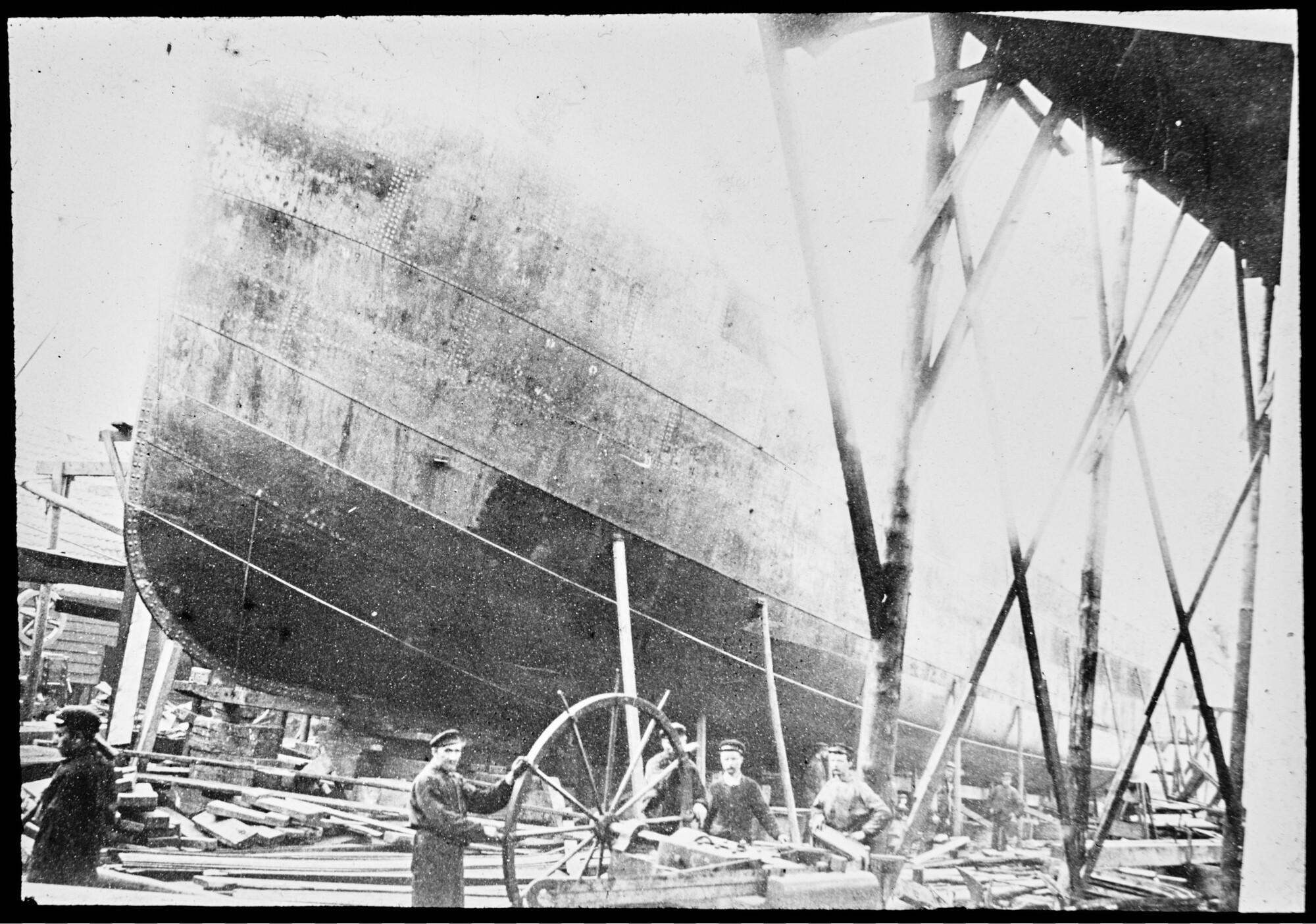 De bouw van het zeiljacht 'Freya' op de scheepswerf ...