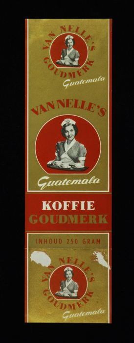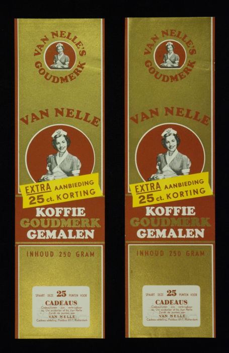 Wit papieren label VAN NELLE ROODMERK KOFFIE, met ee...