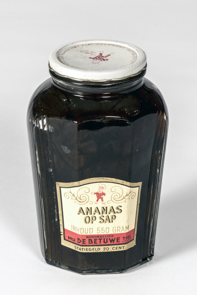 Pot van glas met metalen klikdeksel, inhoud ananas o...