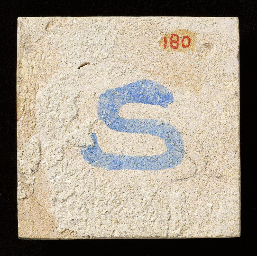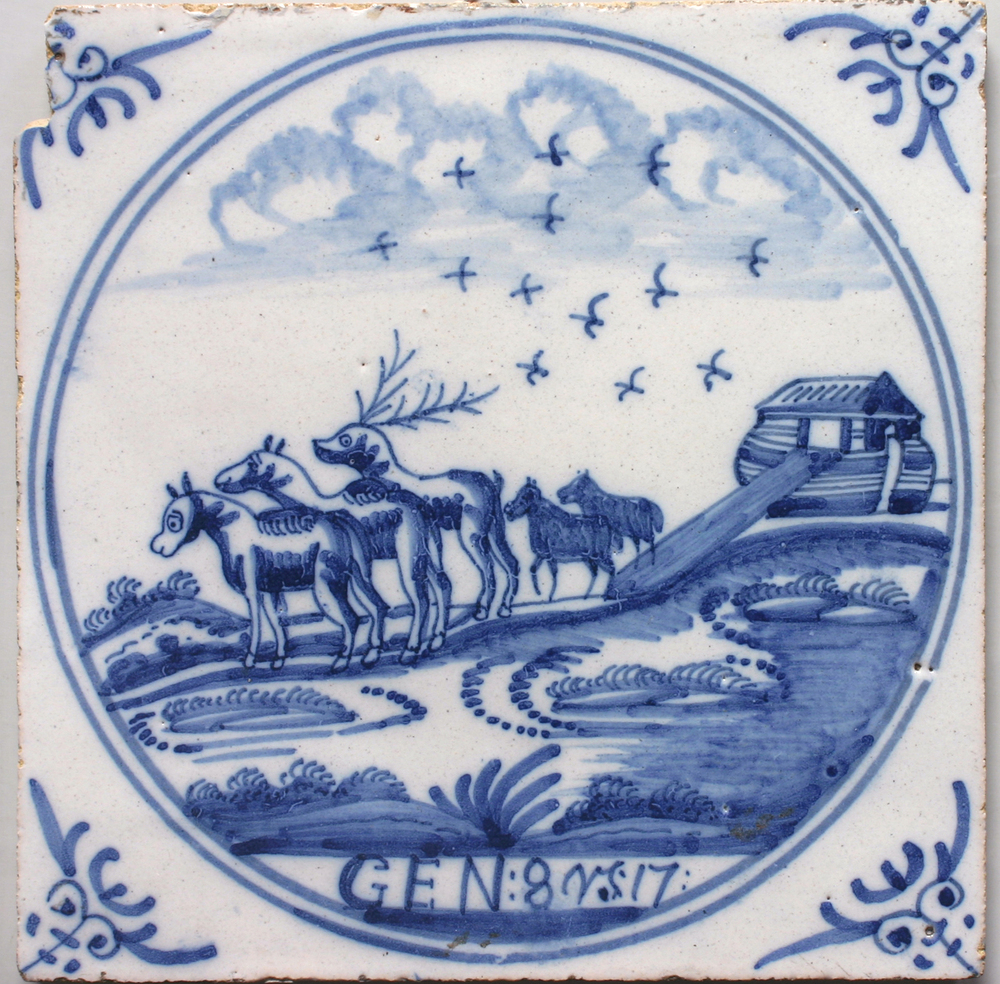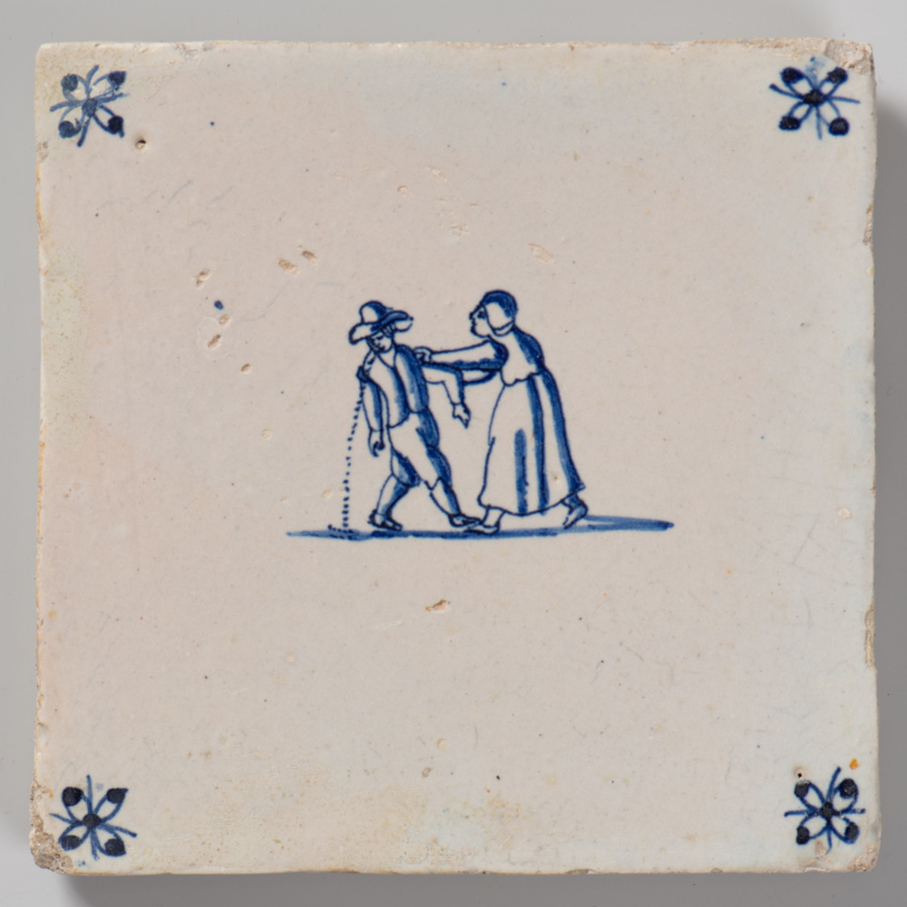 tegel van keramiek met tinglazuur, voorstellende: De...