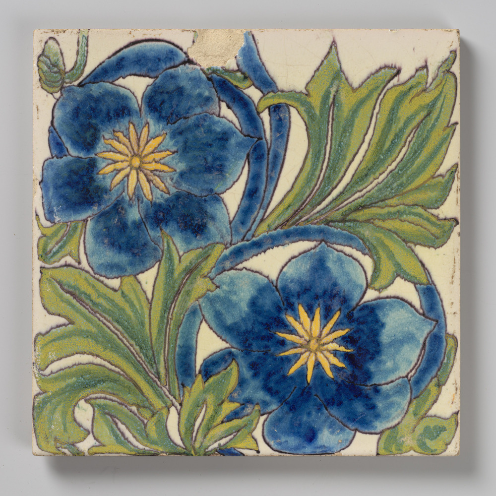 tegel van aardewerk met tinglazuur, voorstellende: v...