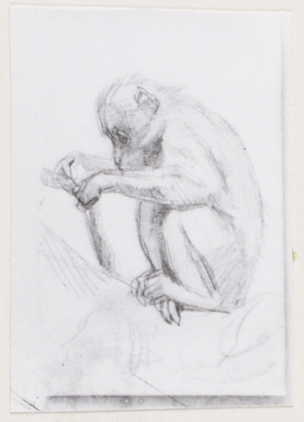 Zittende aap (recto) : dierstudie (verso) uit de ser...