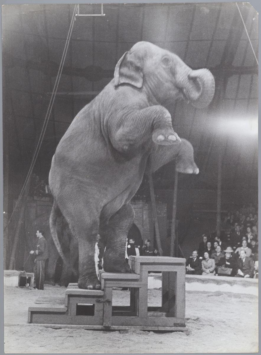 Circus Knie, sterk staaltje van olifanten-dressuur. ...
