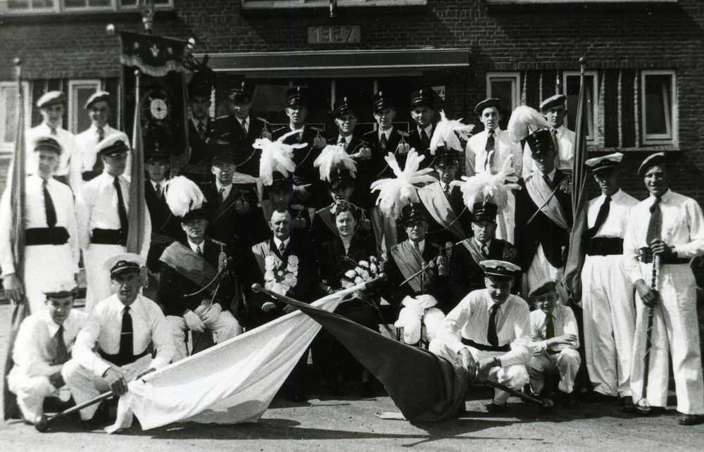 Zwart-wit foto van de Schutterij Vrede en Vriendscha...