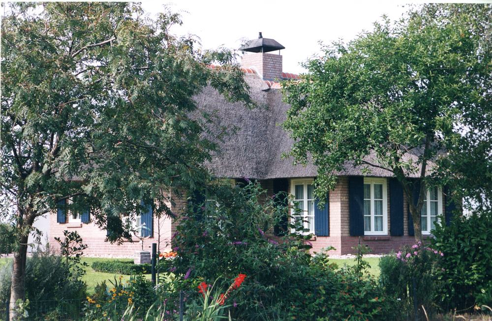 Kleurenfoto van de nieuwbouw op de plaats van boerde...