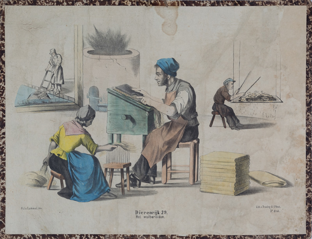 schoolplaat, dierenrijk. Kleurenplaat van een werkpl...