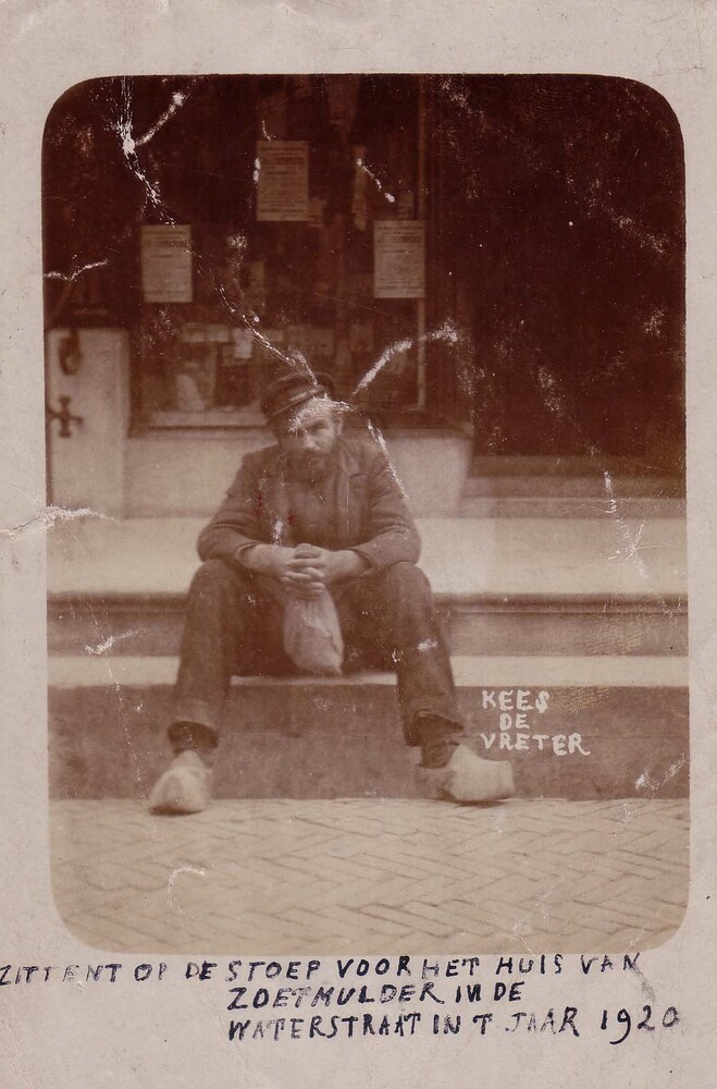 Kees de Vreter (van Ballegooien) zittend op de stoep...