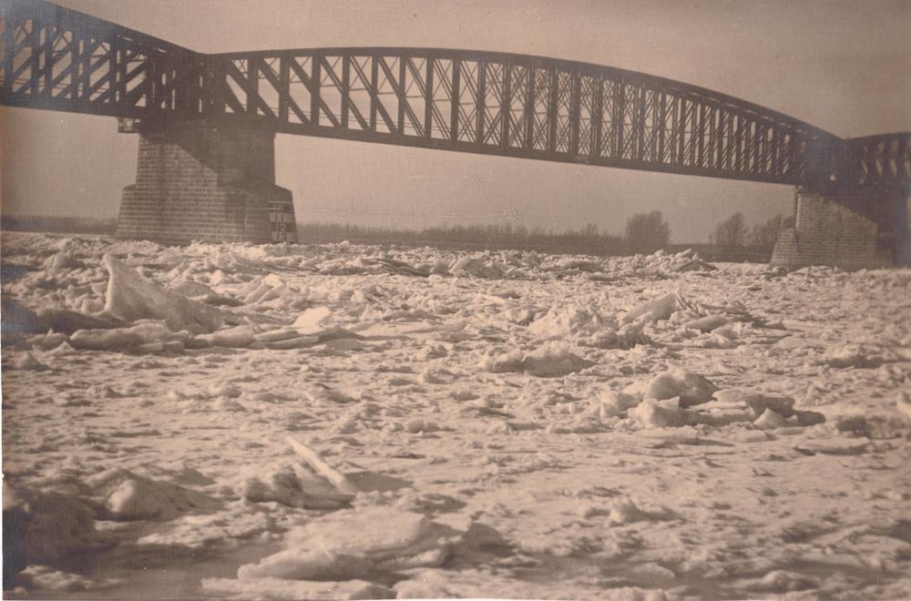 Ijsgang onder de spoorbrug van Zaltbommel 1929