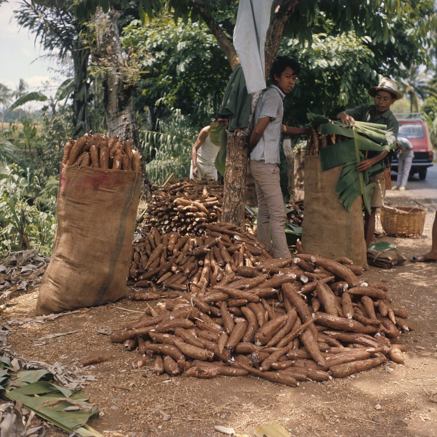 Packing harvested cassava in sacks