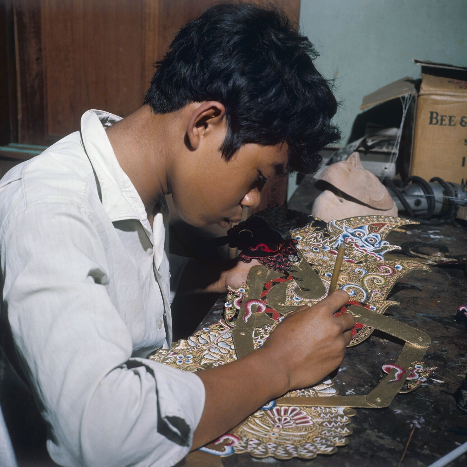 Vervaardiging van wajang kulit poppen
