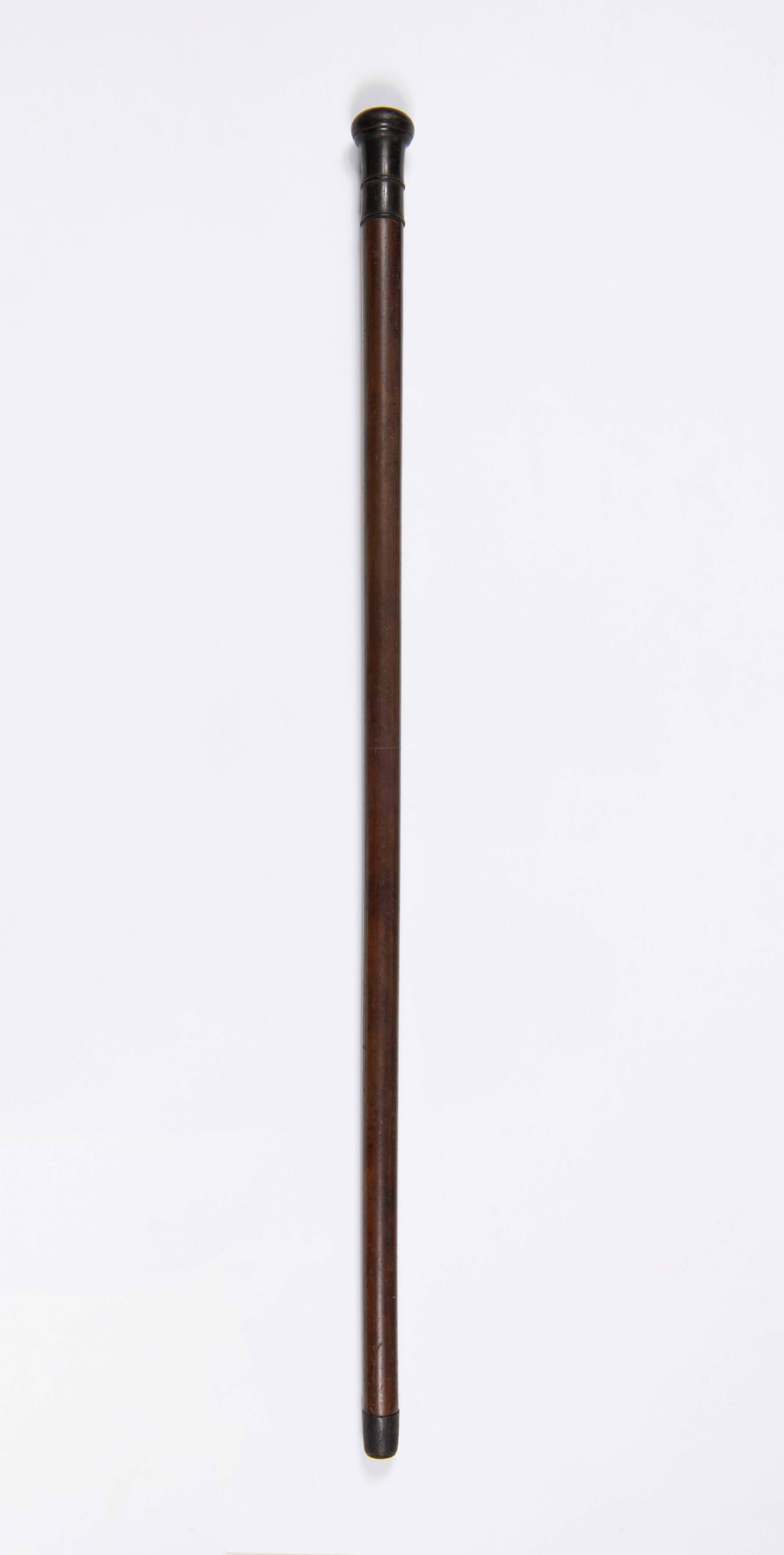 Rotan wandelstok met hoornen handvat een metalen pun...