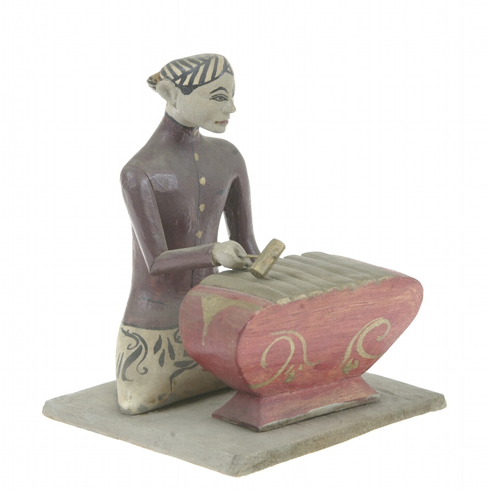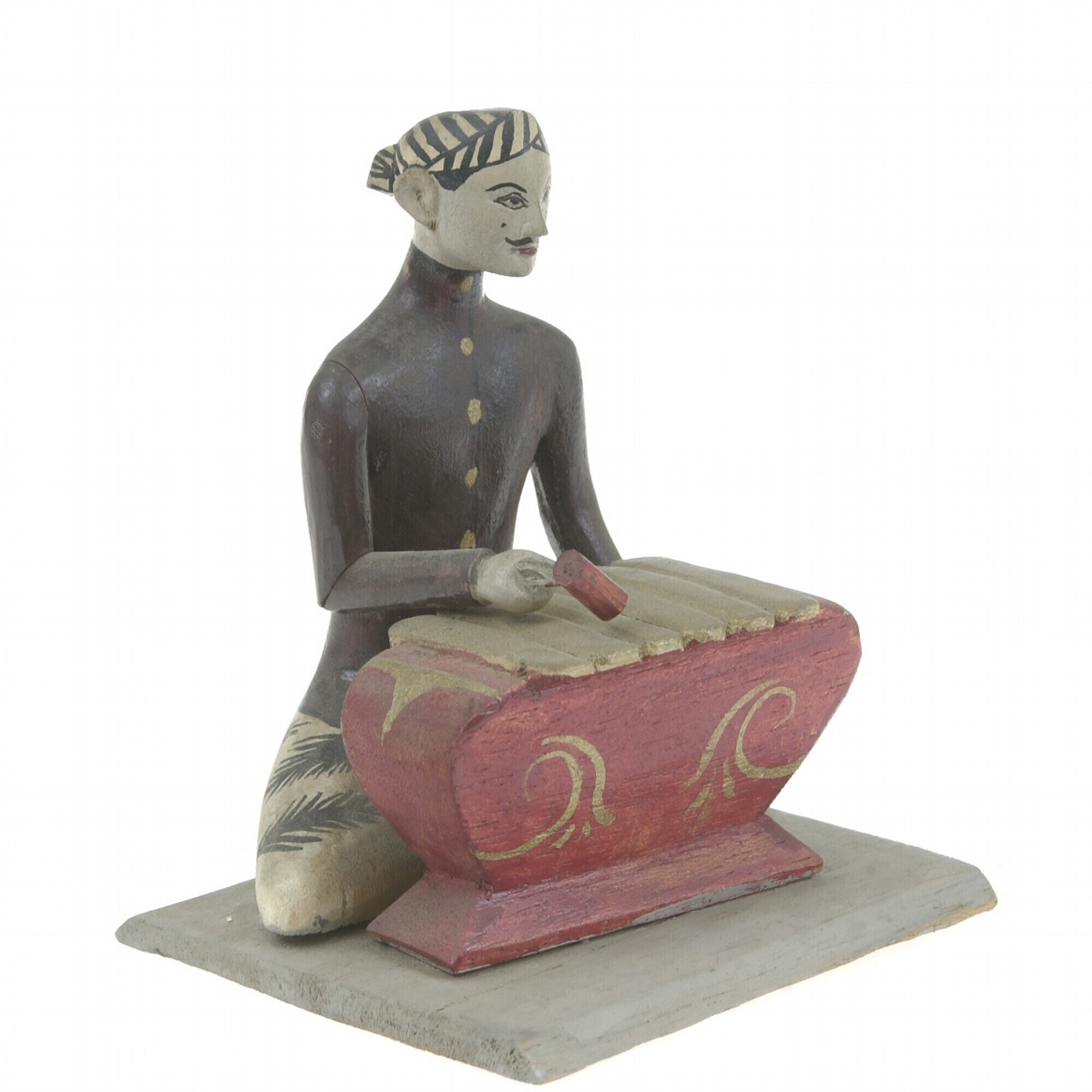 Wooden model of a percussion instrument, with player