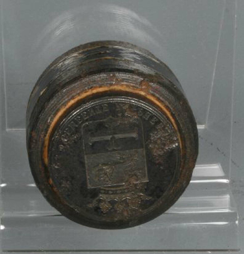 vaas van steengoed met afbeelding stadhuis te Culemb...