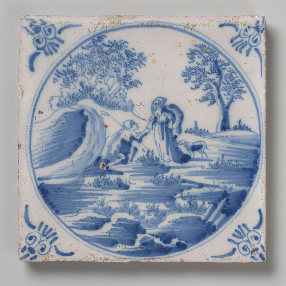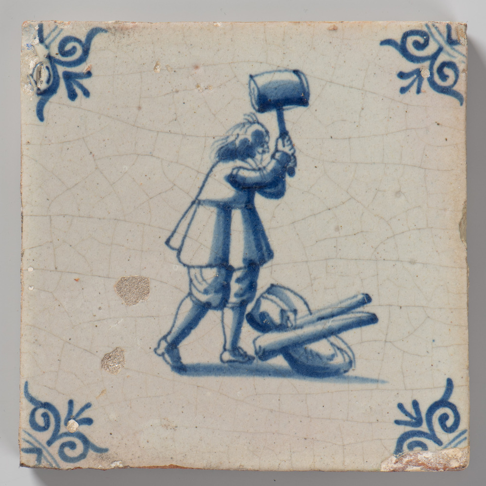 tegel van aardewerk met tinglazuur, voorstellende: m...