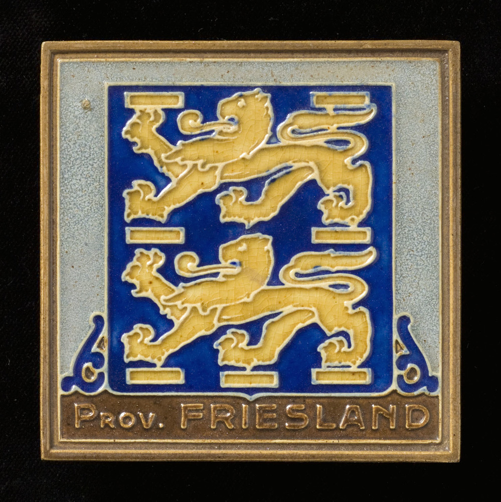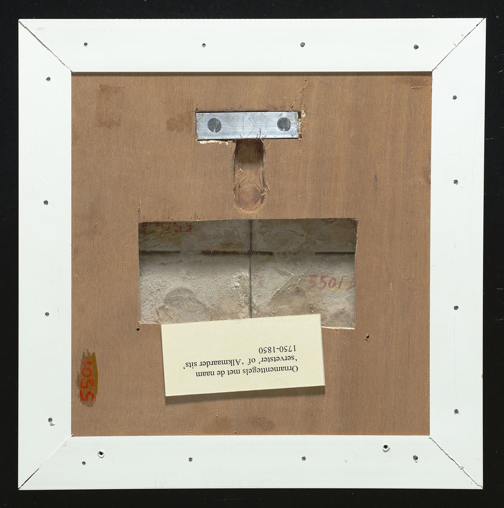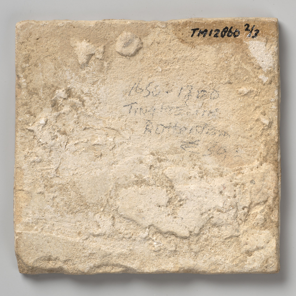 randtegel van keramiek met tinglazuur, voorstellende...