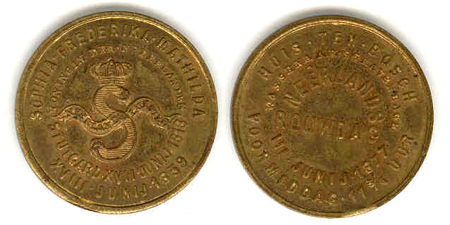 Penning geschonken door Vereeniging voor Vreemdeling...