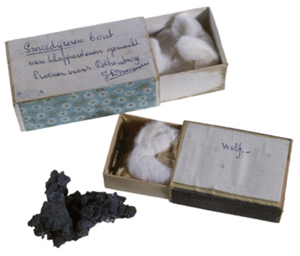 ijzererts in twee doosjes, gebruikt in een experimen...