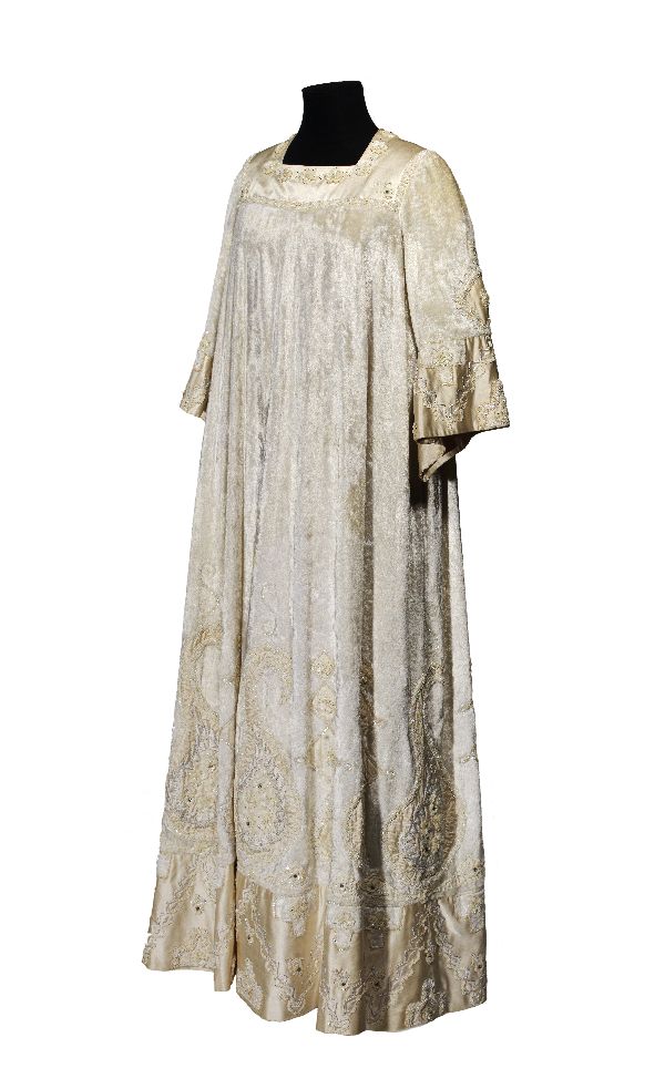 Trouwjurk van crèmekleurige zijden velours-panne met...