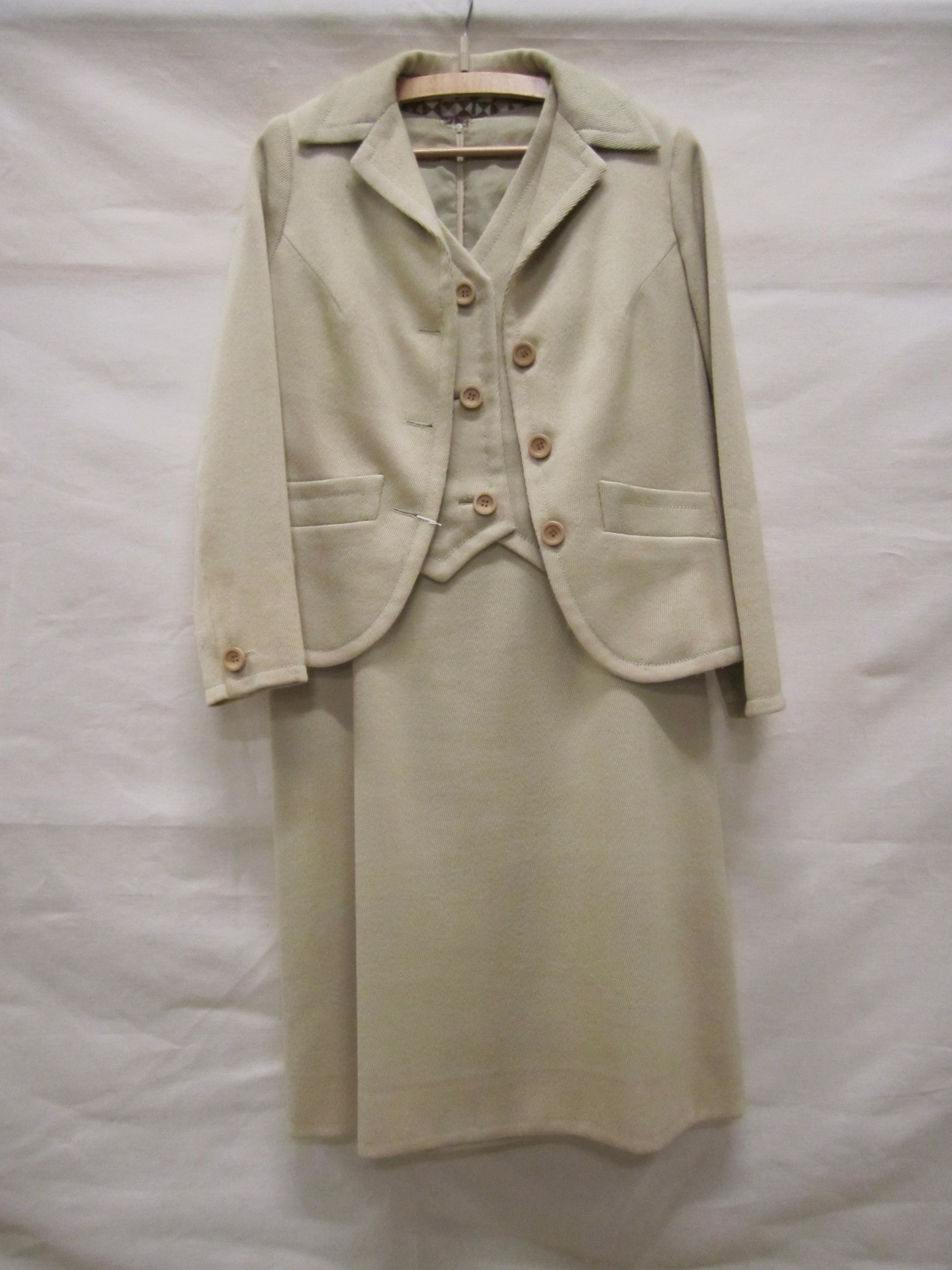 Ensemble van beige gemengde wol in keperbinding, bes...