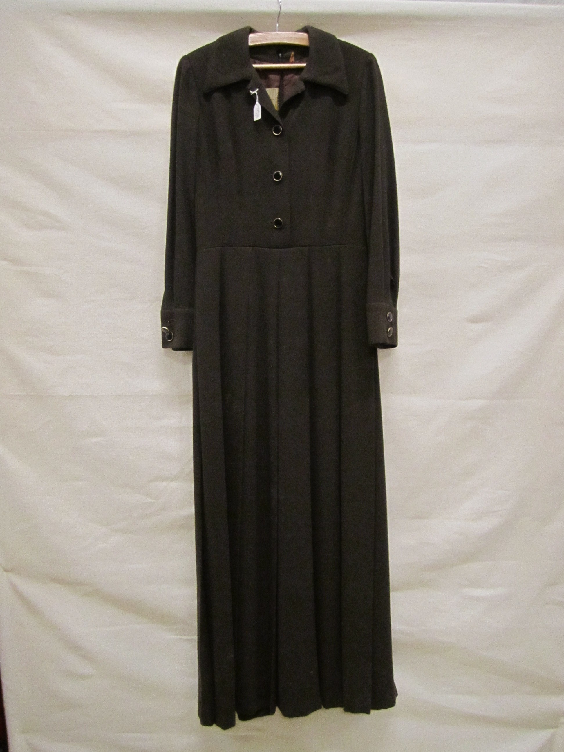 Avondjurk van donkerbruine wollen crêpestof, lijfje ...