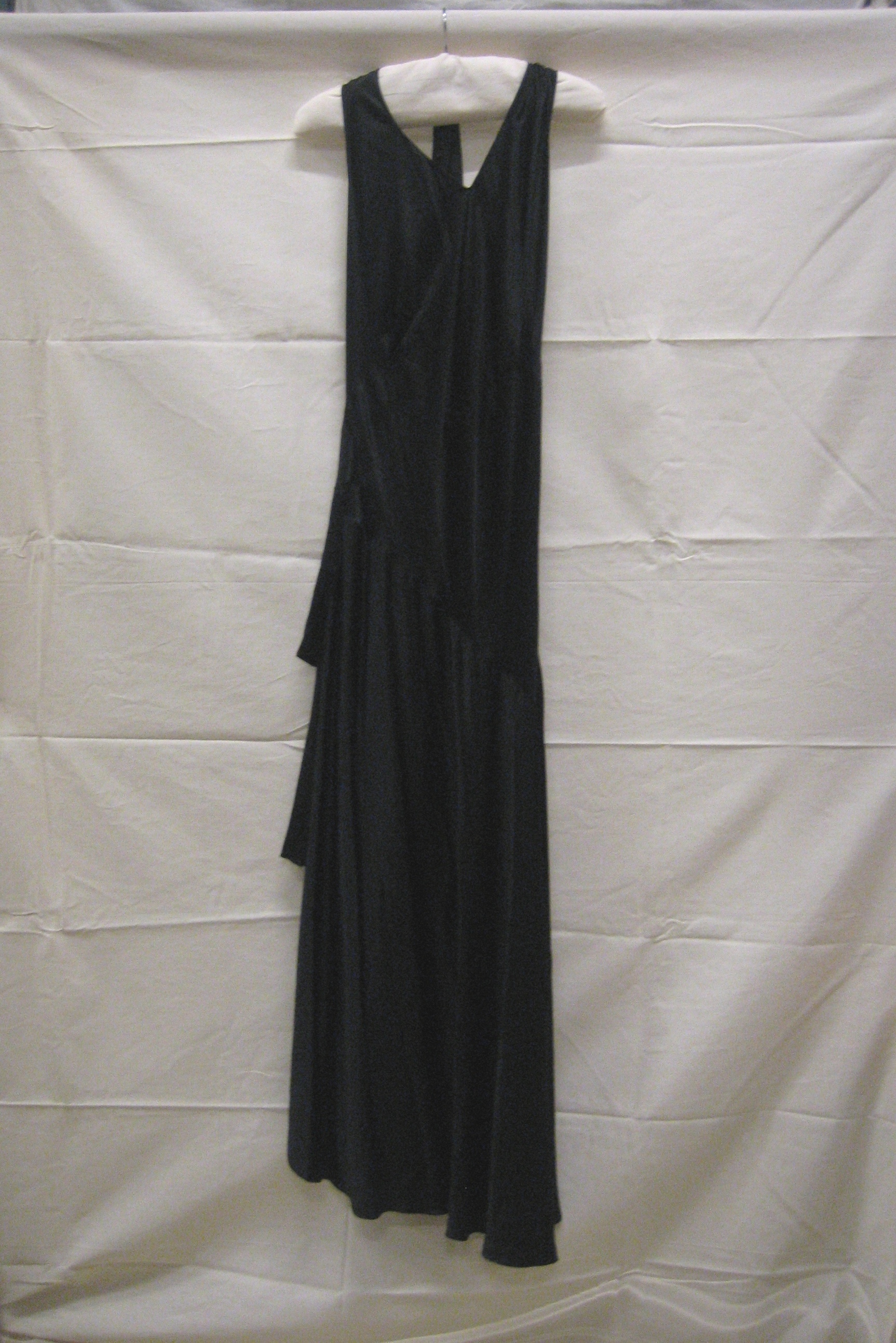 Jurk, avondjurk van zwart katoenen fluweel, lang, na...