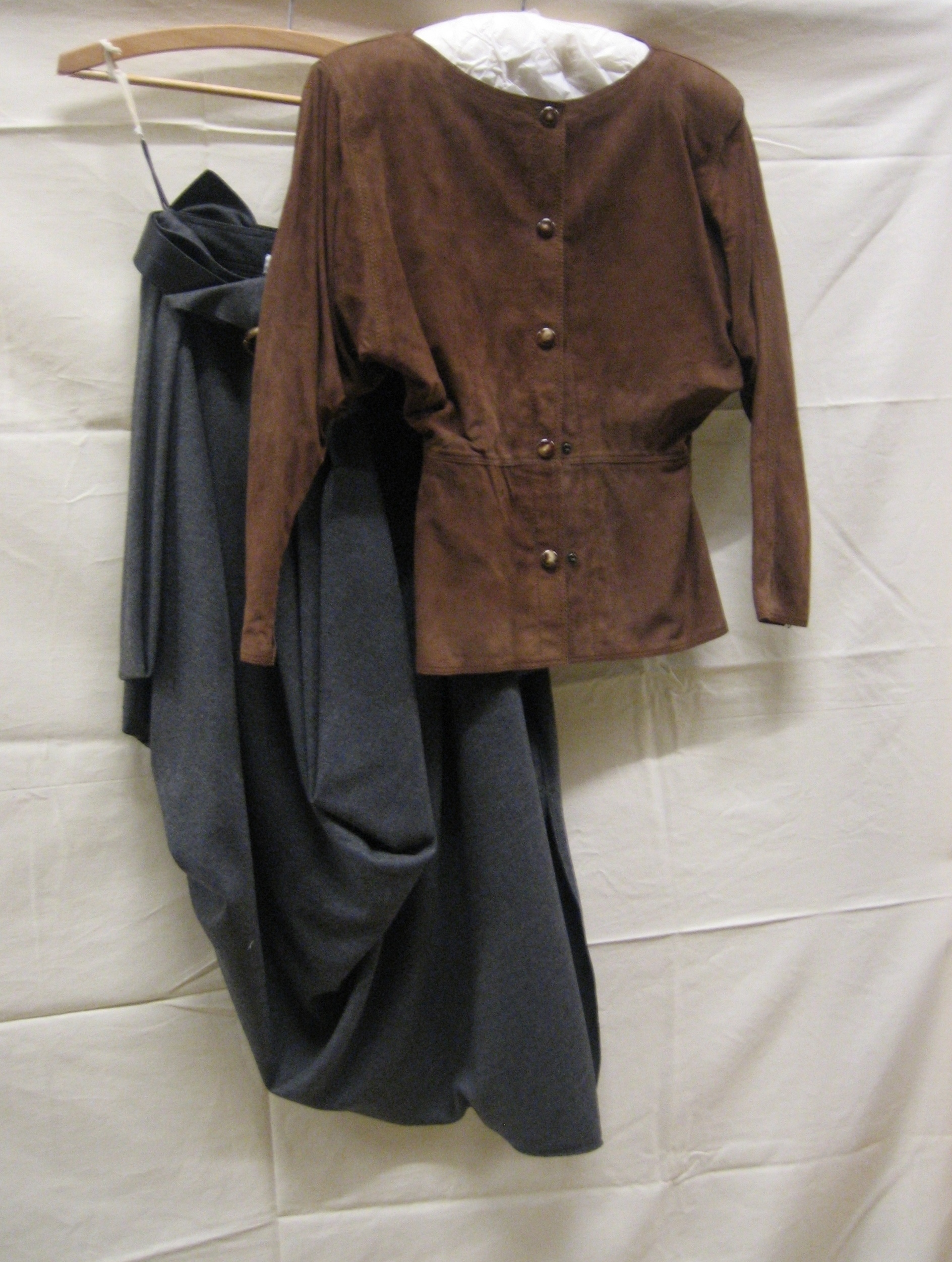 Ensemble bestaande uit een jasje van bruin suède en ...