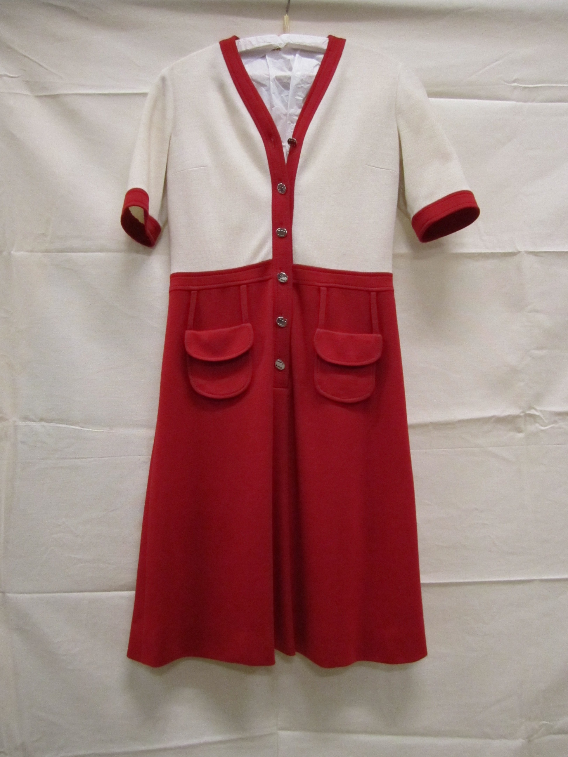 Jurk, lijf van wit wollen tricot, split met V-hals a...