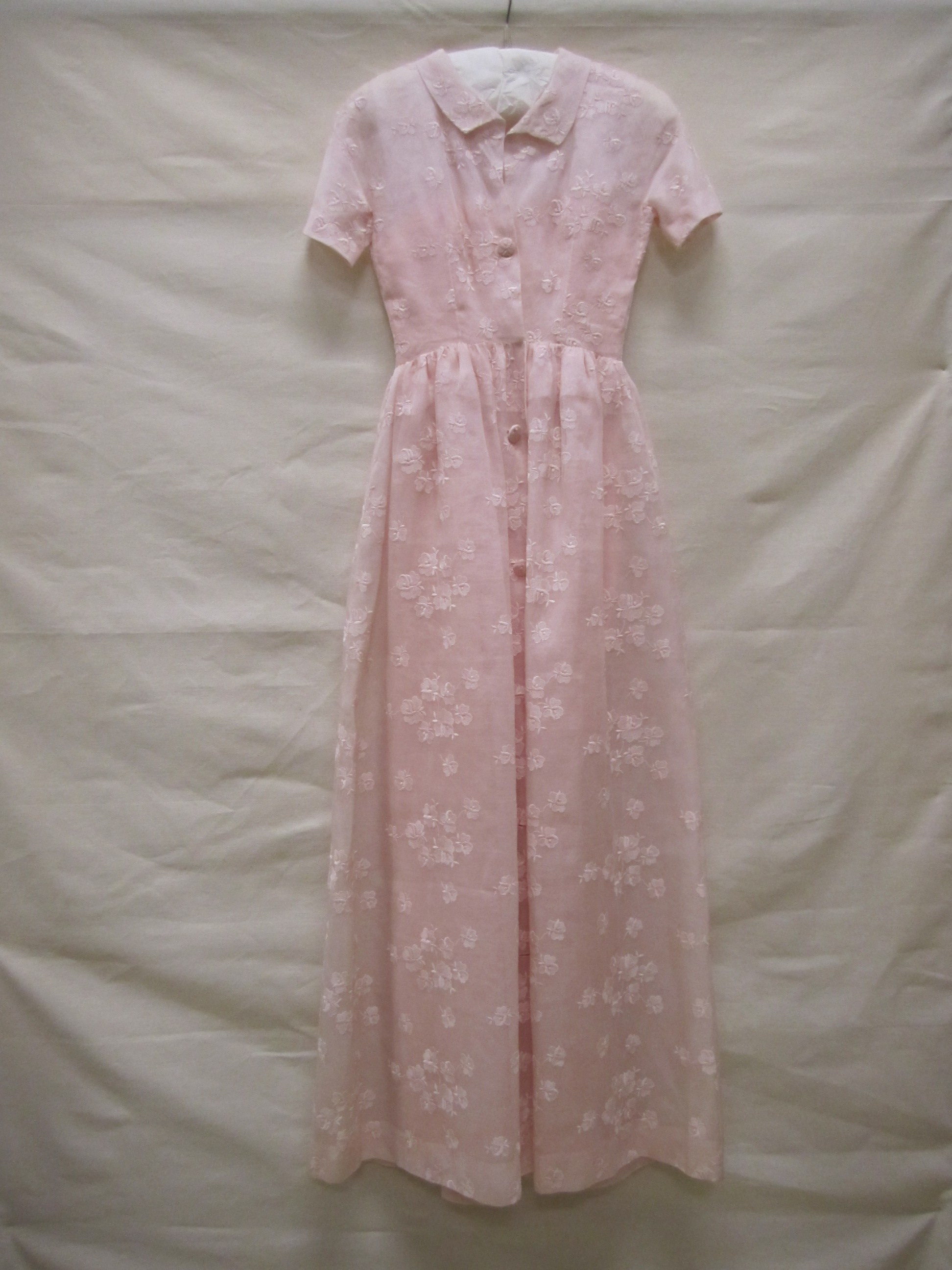 Avondjurk of deshabillé van lichtroze organdi met ma...