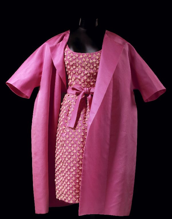 Cocktailensemble van roze zijde, bestaande uit een m...