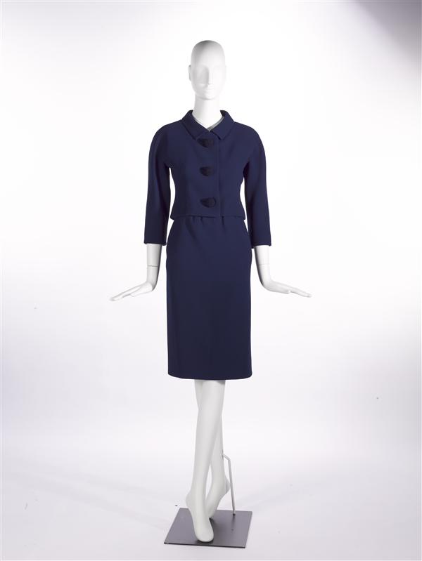 Mantelpak van donkerblauwe wollen crêpe bestaande ui...