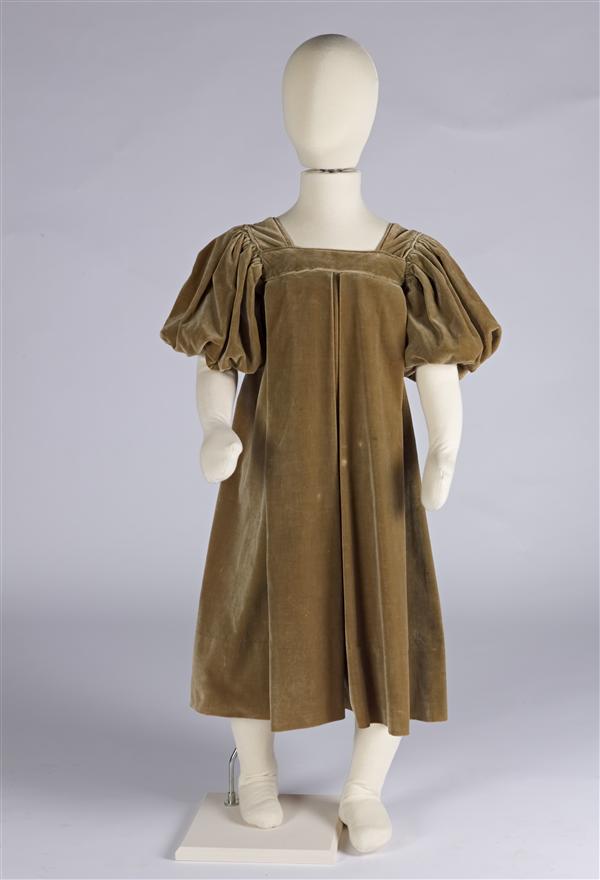 Kinderjurk (meisje) van bruingroen zijdefluweel met ...
