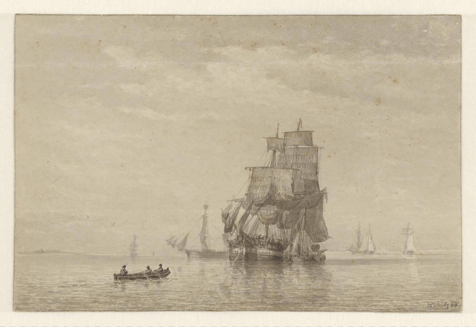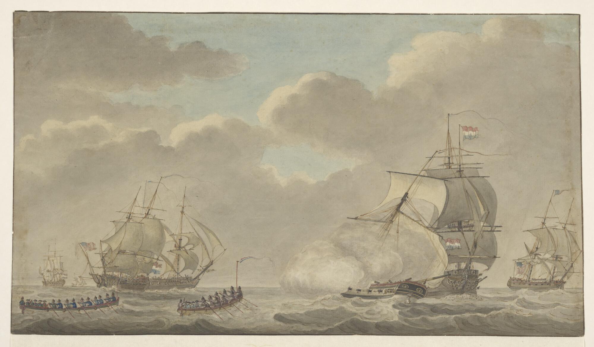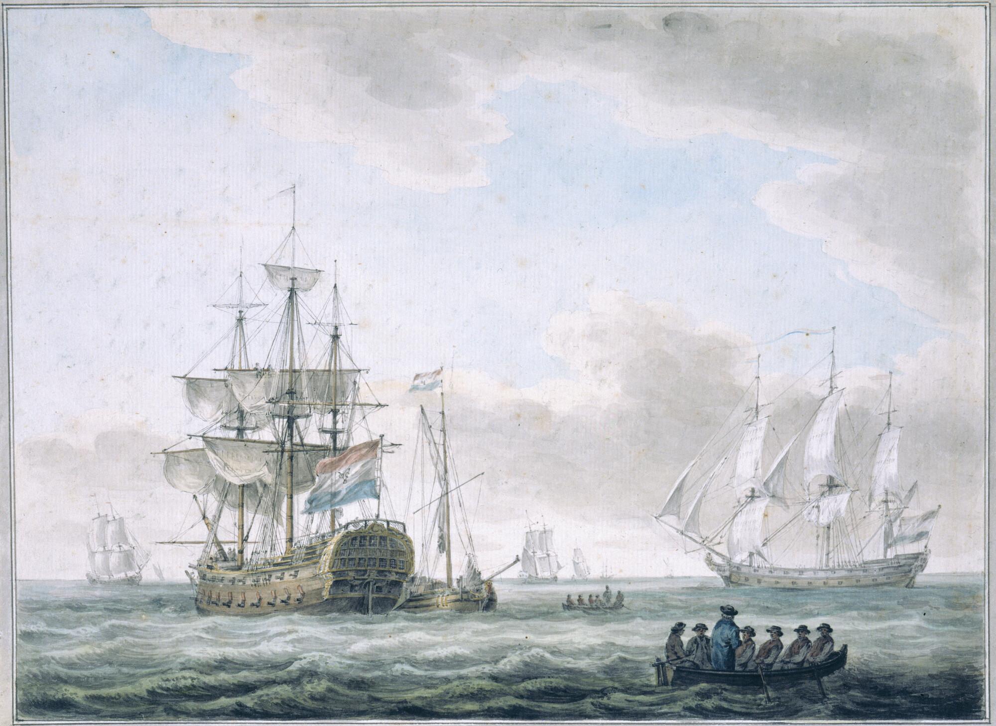 Oorlogsschepen onder zeil in het zeegat van Texel