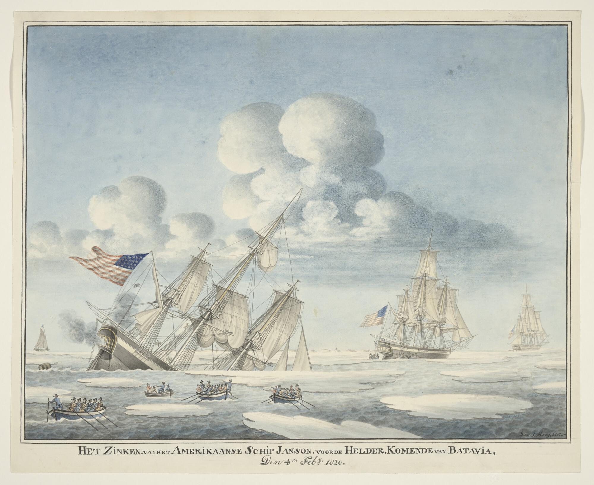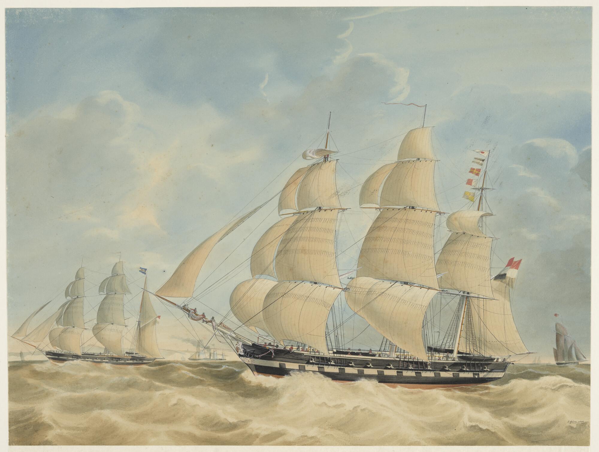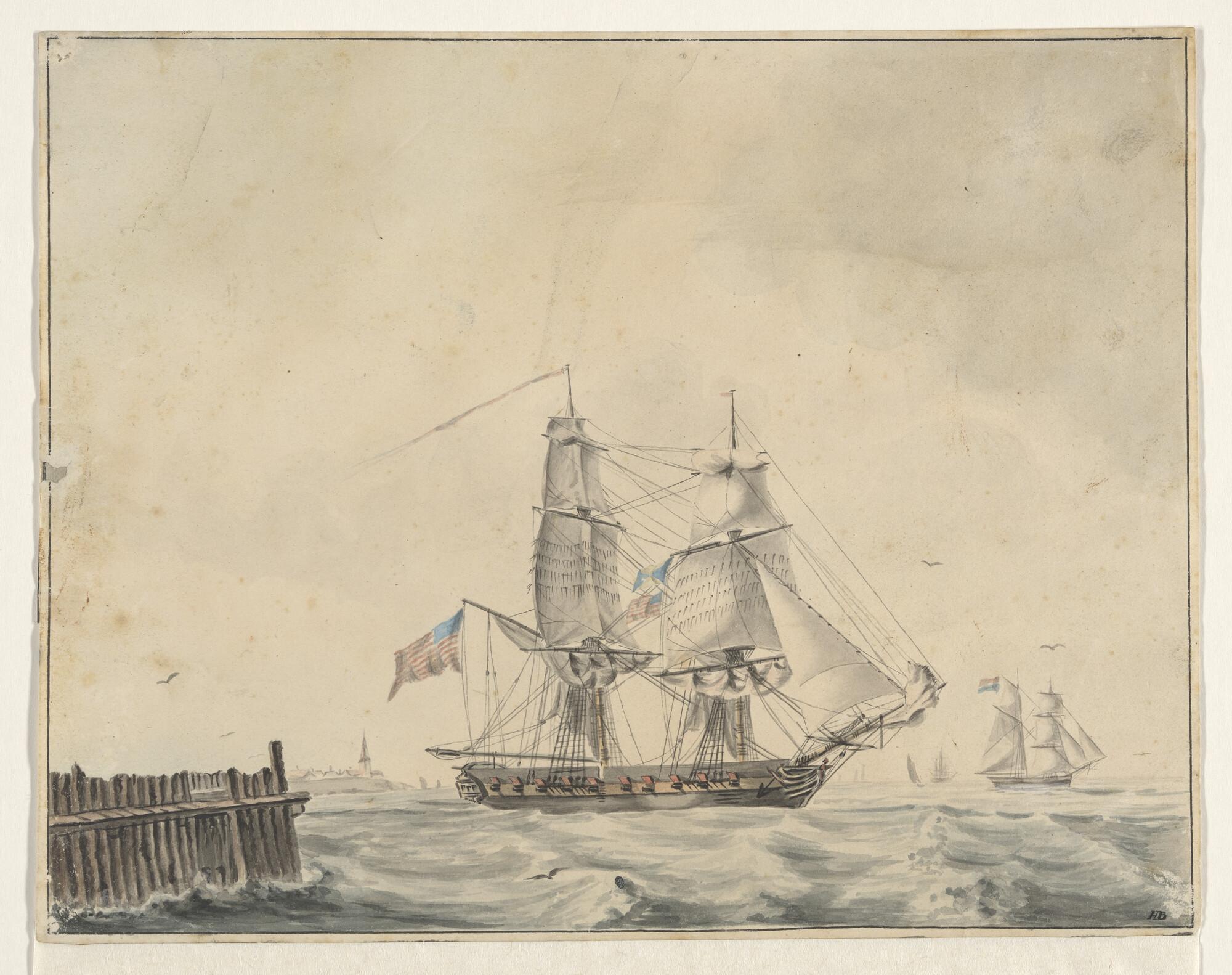 Oorlogsschepen onder zeil in het zeegat van Texel