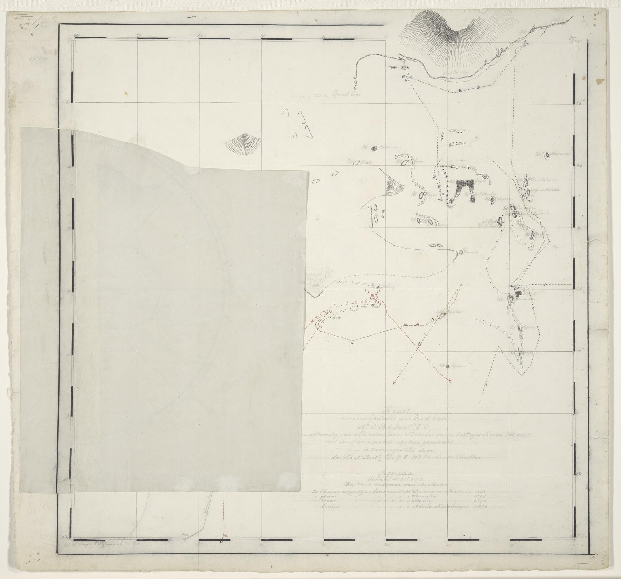 Handschriftkaart van de noordoostkust van het eiland...
