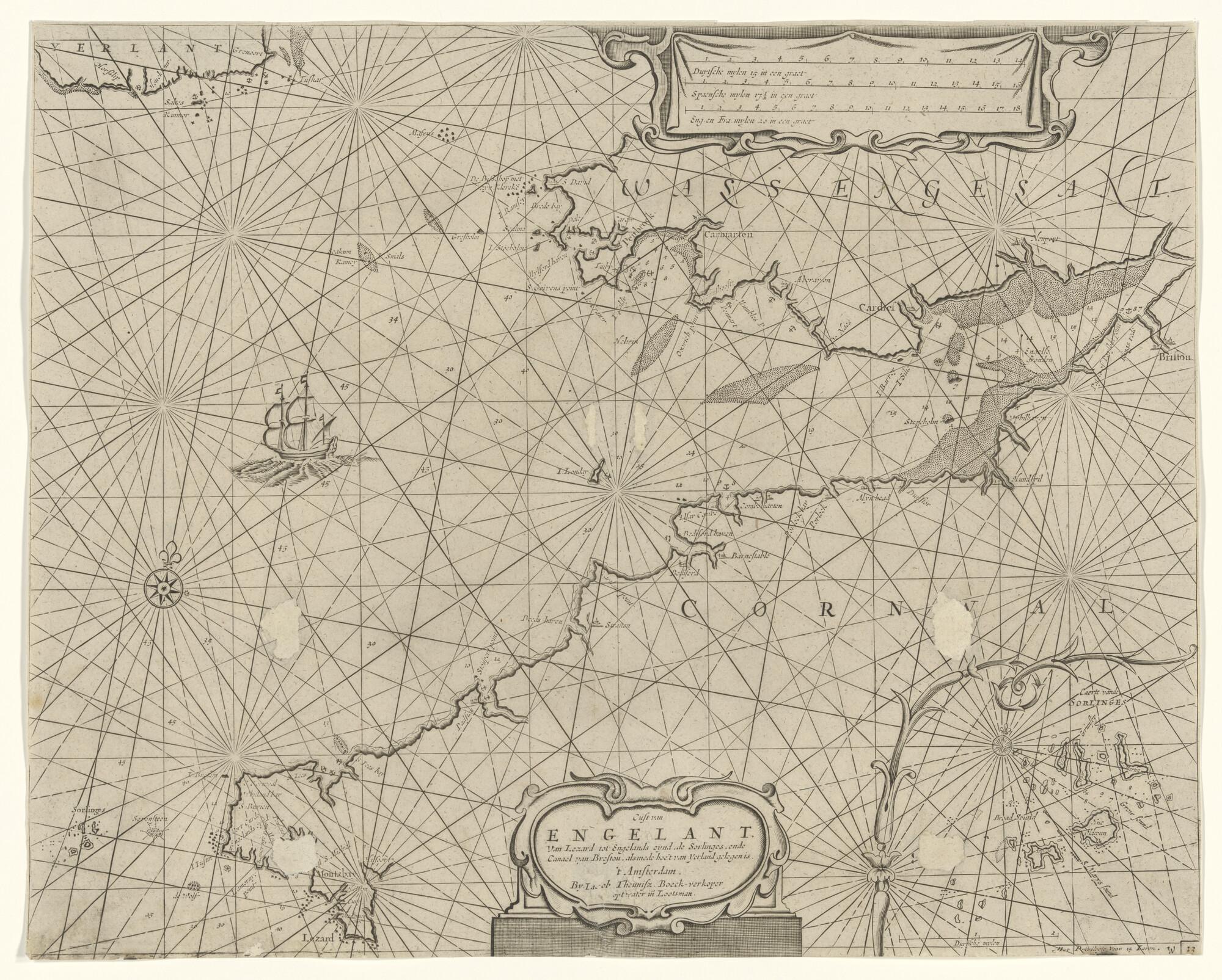 Zeekaart van de wateren rond de Scilly eilanden, met...