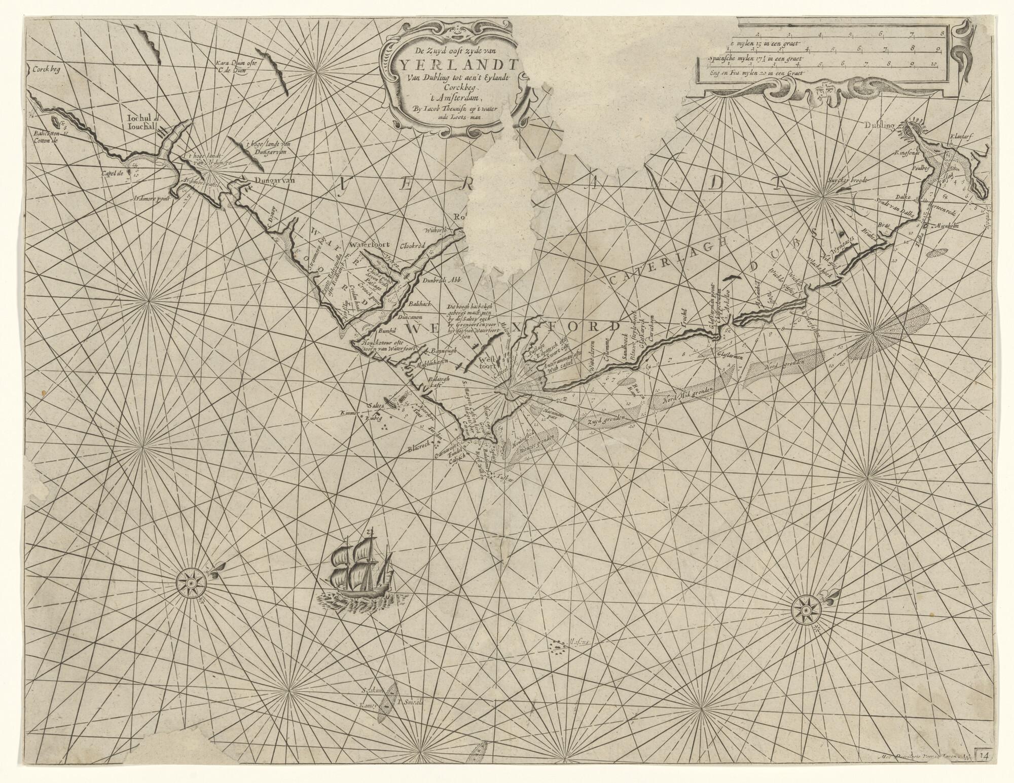 Zeekaart van de westkust van Ierland tussen het eila...