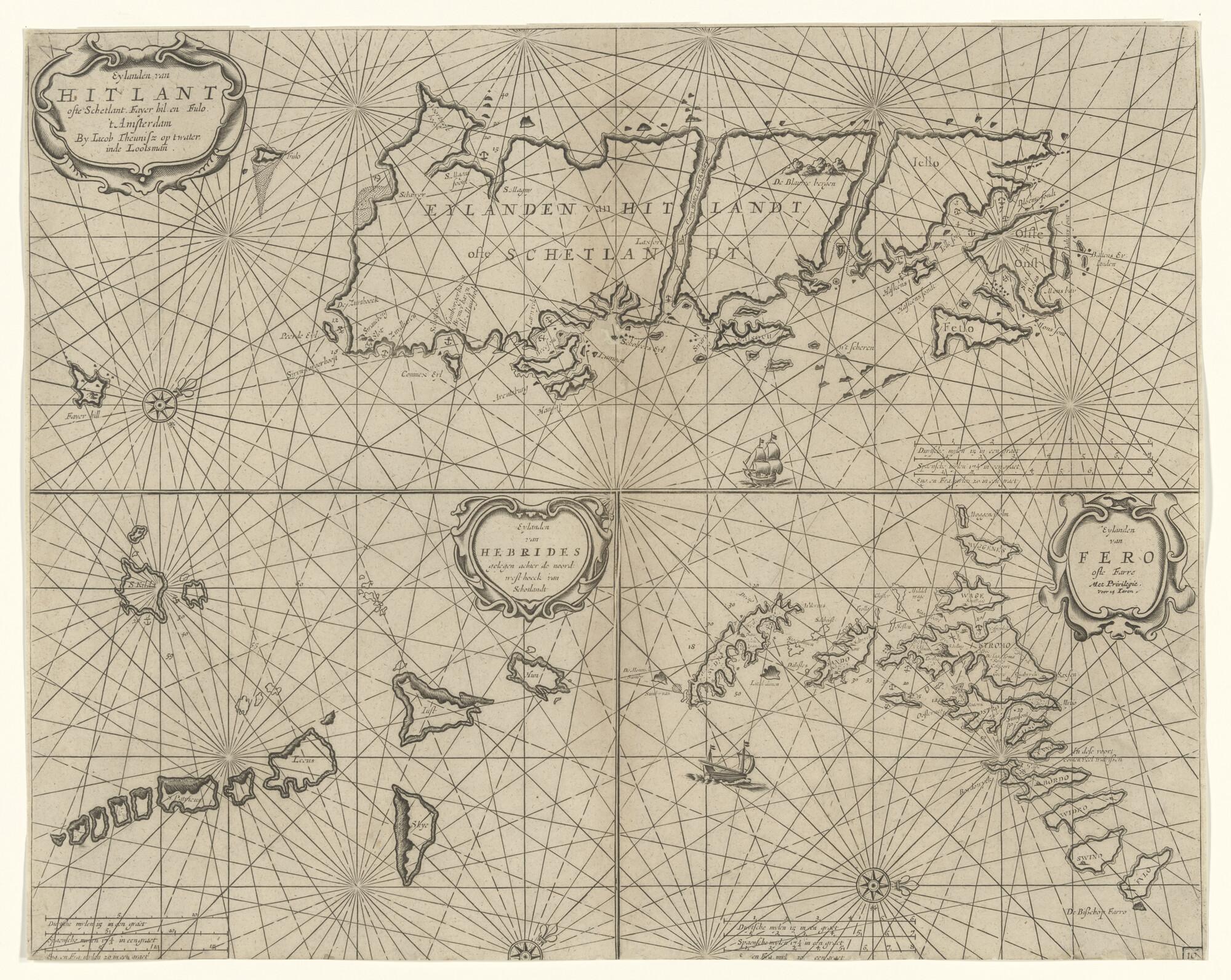 Zeekaart van de Shetland eilanden de Hebrides en de ...