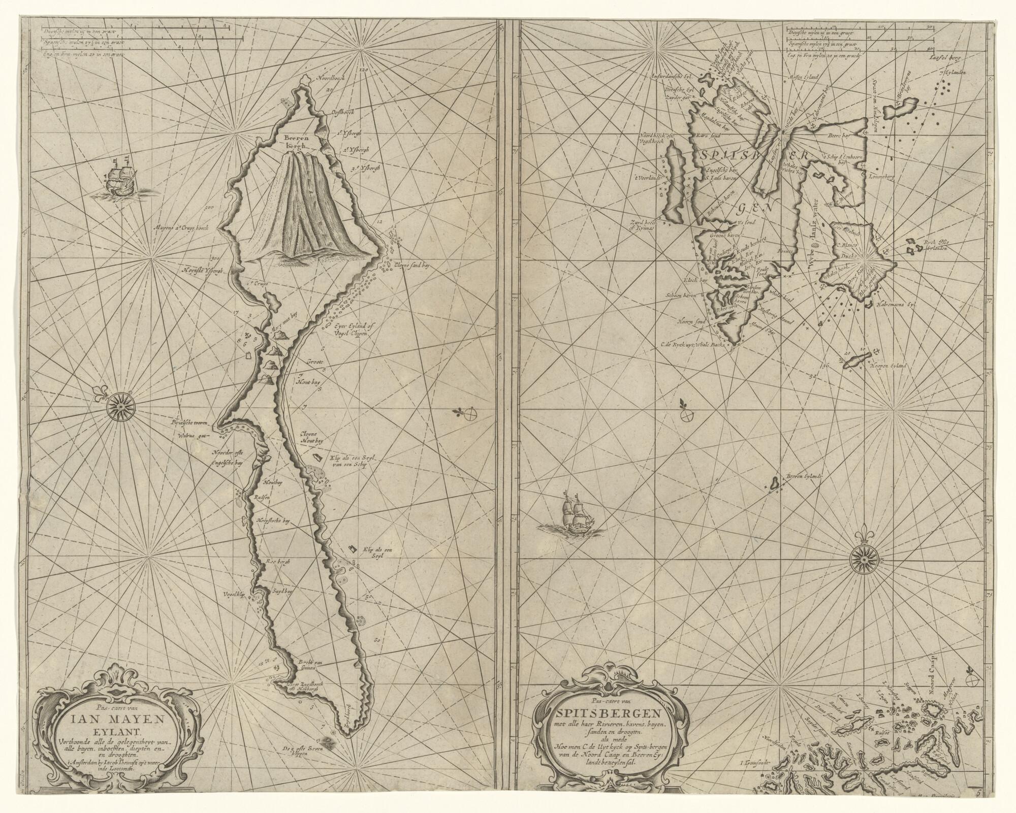 Kaart van de eilanden Jan Mayen eiland, Spitsbergen ...