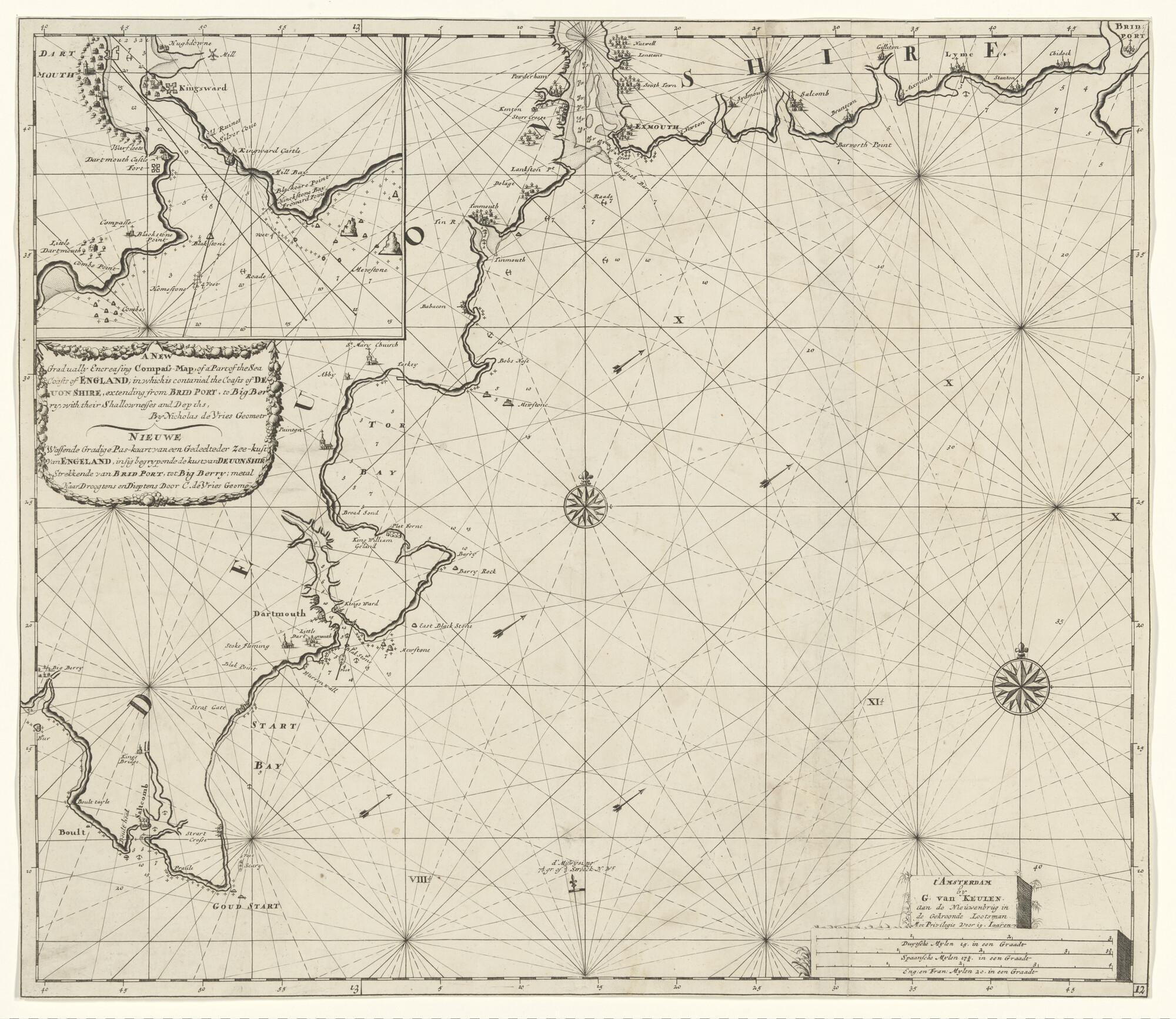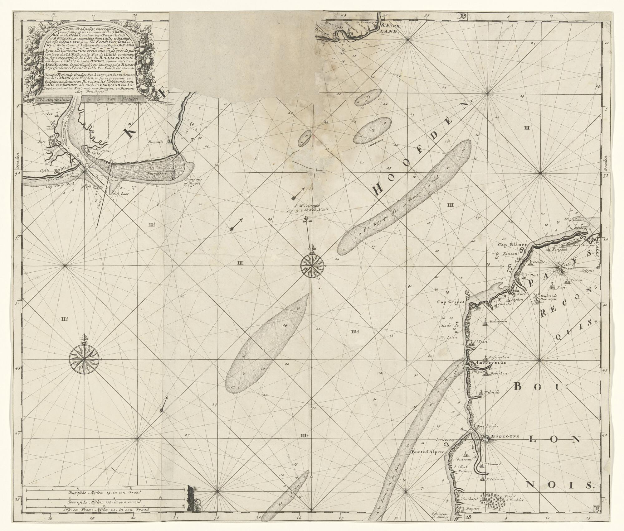 Zeekaart van Het Kanaal met een deel van de Engelse ...