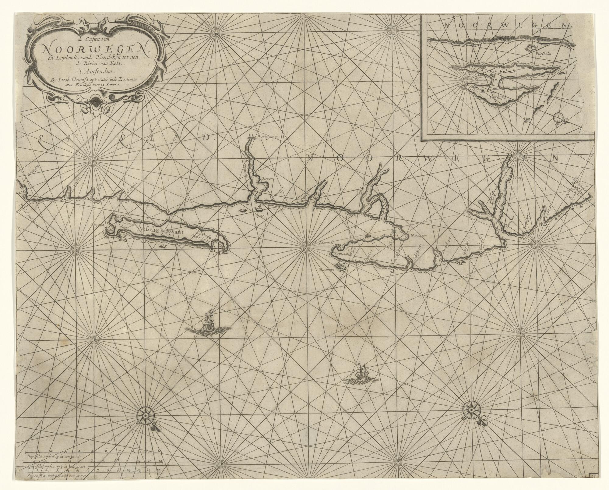 Zeekaart van de kust van Noorwegen en Lapland, van d...