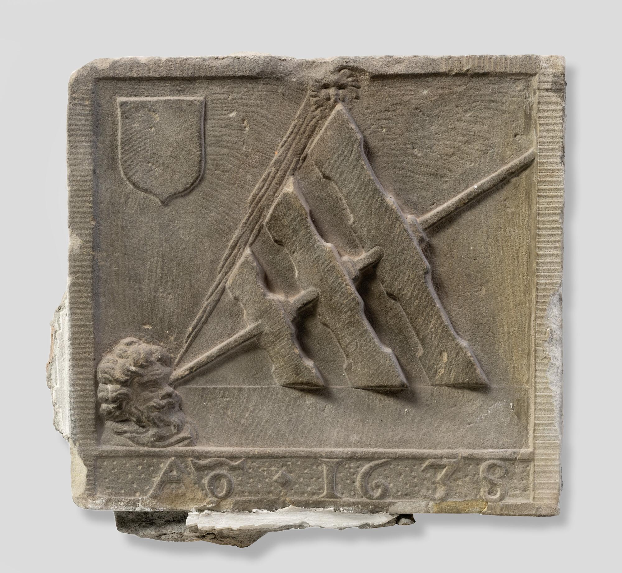 Gevelsteen met een afbeelding van de hoogtemeting va...