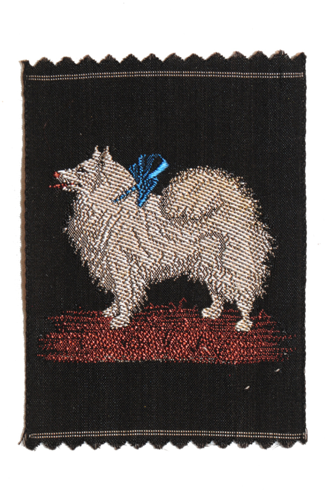 Zijdje 'Keeshond met blauwe strik' textiel, Kiazim-E...