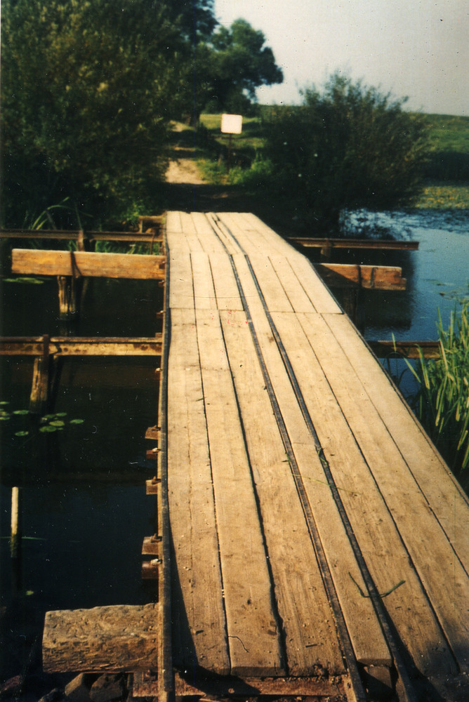 Kleurenfoto van de planken vlonder over de Oude Waal...