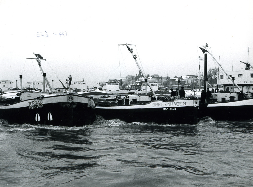 Zwart-wit foto van Oost - Duitse schepen op de Rijn ...