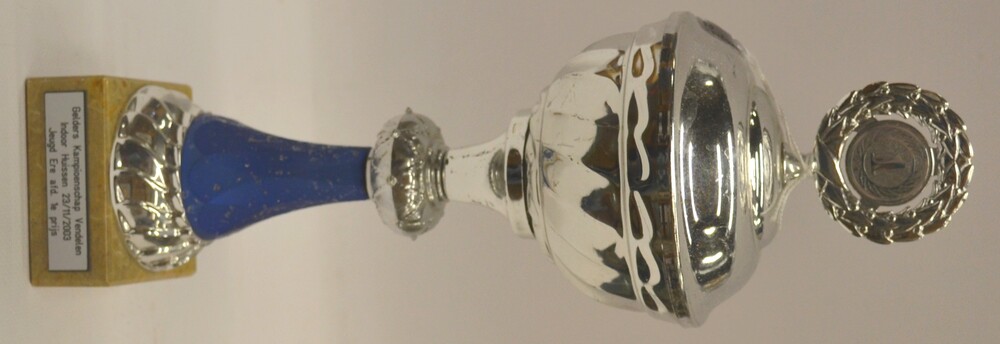 Wisselbeker van metaal goudkleurig op een sokkel van...