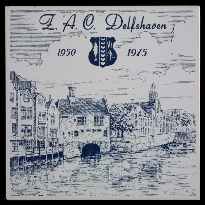 Gedenktegel van "Z.A.C. Delfshaven", blauw op wit