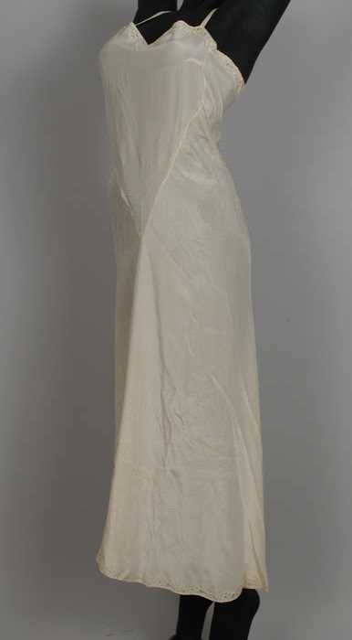 Gerende nachtjapon van ivoorkleurig zijdesatijn met ...