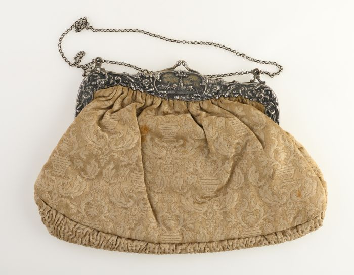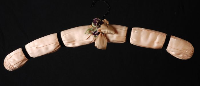 Kledinganger bekleed met roze zijde, met zwart fluwe...
