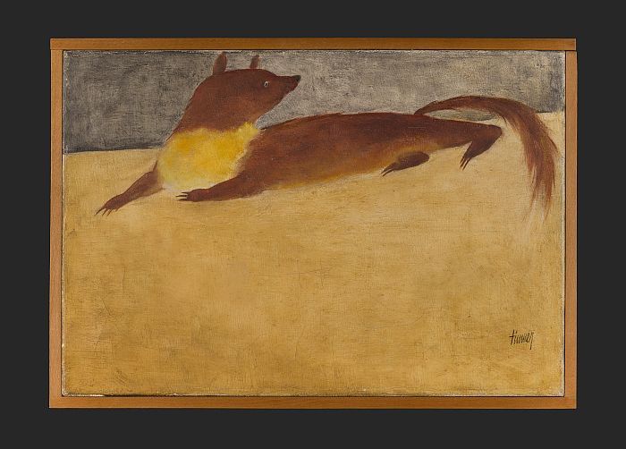 Dierentegel, zittende kleine aap, hoekmotief ossenkop